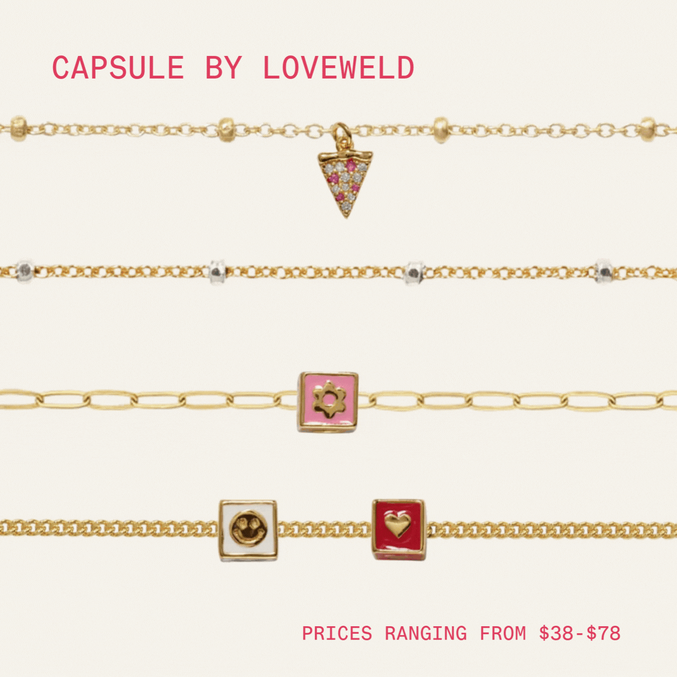 Ring- $68 | Bracelet- $148 | Anklet- $188 | Necklace- $288